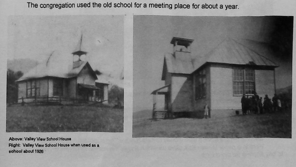 By 1941, the congregation had outgrown the small house and began looking for a more permanent place to meet. The church moved to the old Valley View Schoolhouse, located about a mile down the road. The school had ceased operations, and the church hoped to purchase the building, but plans fell through. It was at this location that the church formally changed its name to Valley View Baptist Church.